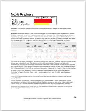 Each element in the audit is fully explained and prioritized based on site priority, benefit to the site, and difficulty of implementation.